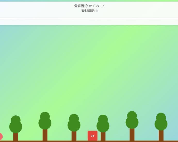 因式分解跑酷大冒险 控制角色收集正确的因式分解方块,避开错误的方块!使用空格键或点击屏幕跳跃。 开始